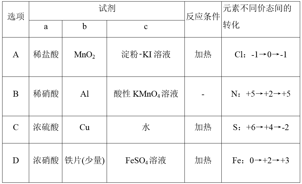 (2024·江西赣州高一期中)利用如图装置(夹持装置略,可增加加热装置)能探究指定元素化合价变化的是(已知:酸性KMnO4溶液可将NO、NO2均氧化生成)( )
