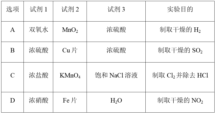 双氧水在MnO2催化作用下分解放出氧气而不是氢气,A错误;常温下铜和浓硫酸不反应,B错误;常温下,铁在浓硝酸中发生钝化,D错误。