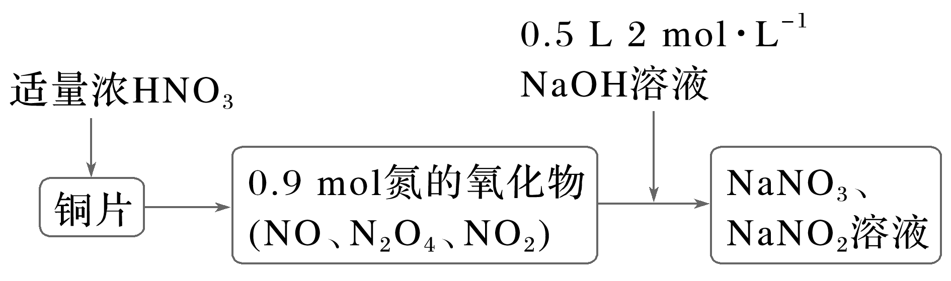 (2024·扬州高一期中)Cu与浓硝酸反应生成氮的氧化物,这些氧化物恰好溶解在NaOH溶液中得到NaNO3和NaNO2的混合溶液,反应过程及有关数据如图所示