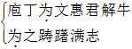 答案: 我看到那里很难下刀,就小心翼翼地提高警惕,眼睛因为(筋骨交错聚结的地方)而凝视不动,动作也因此慢下来。