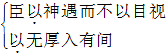答案: 我只用精神去和牛接触,而不用眼睛去看,感觉器官的作用停止了,而精神在活动。