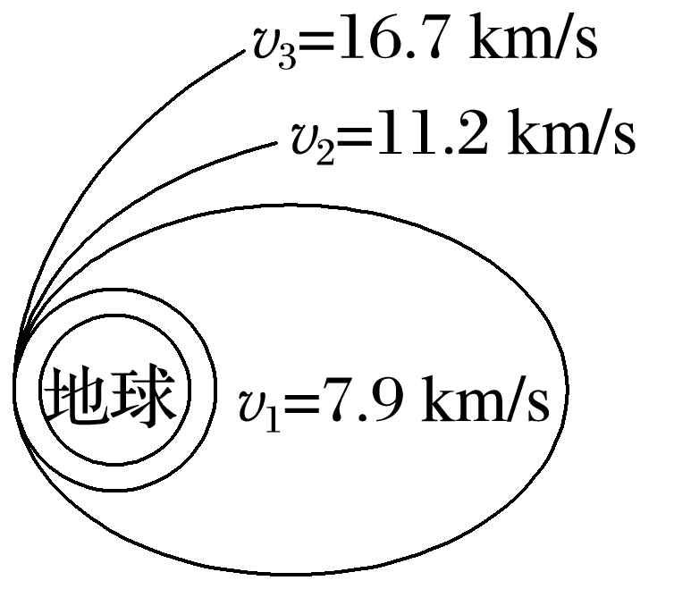 (多选)如图是关于地球表面发射卫星时的三种宇宙速度的示意图,下列说法正确的是( )