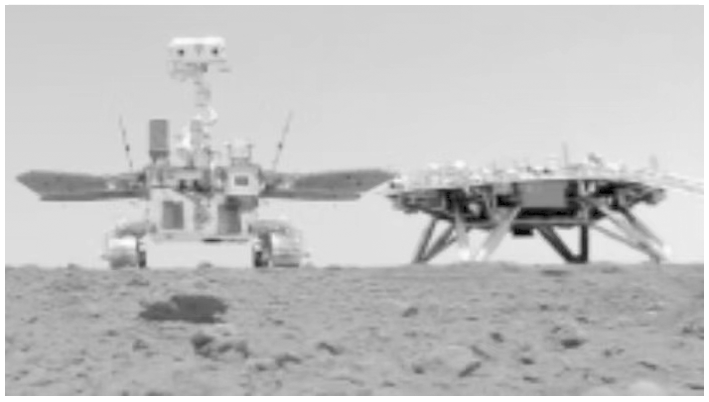 (2024·杭州市第四中学高二期中)中国首辆火星车“祝融号”已到达火星表面(如图所示)开始巡视探测,已知地球质量约为火星质量的9.28倍,地球的第一宇宙速度约为火星的2.2倍。假设地球和火星均为质量分布均匀的球体,不考虑地球和火星的自转,则“祝融号”在地球表面和火星表面所受万有引力大小的比值约为( )
