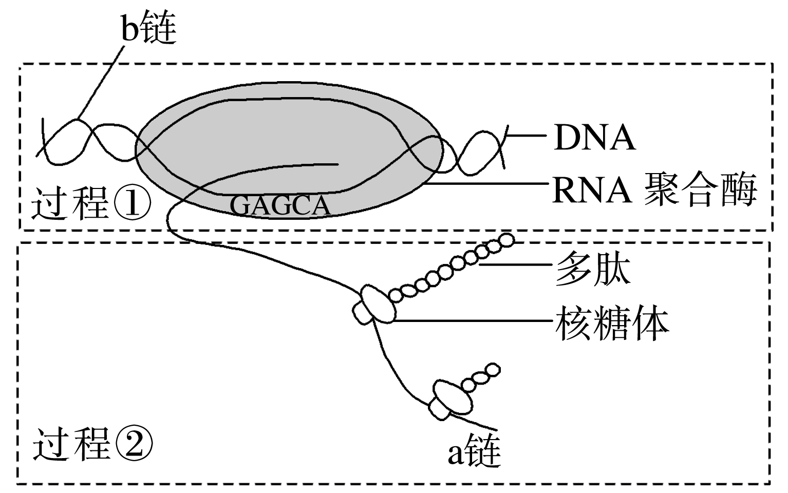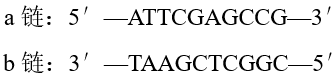 如图为某DNA分子的部分碱基序列,若以a链为模板,转录的结果是