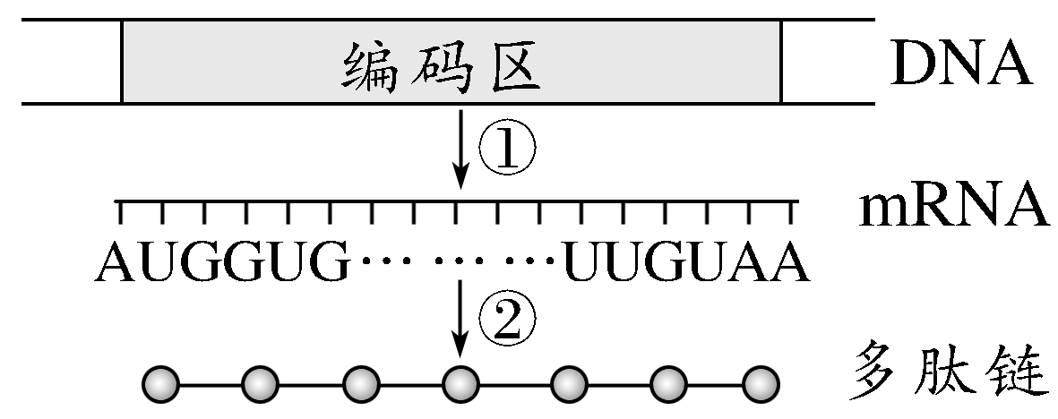 药物AminoLP7含有七种特定的氨基酸,可有效减缓阿尔茨海默病小鼠的大脑退化的发展,某研究小组利用大肠杆菌合成了这种短肽,其基因表达的过程如图所示,①②表示生理过程。