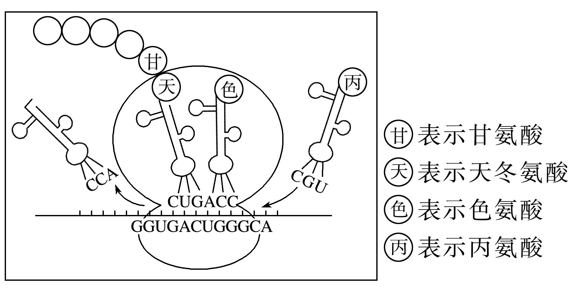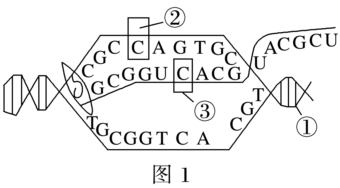 (3)由密码子表可知,CGU-精氨酸、UGC-半胱氨酸、GCA-丙氨酸、ACG-苏氨酸。图2中④所携带的氨基酸是__________。