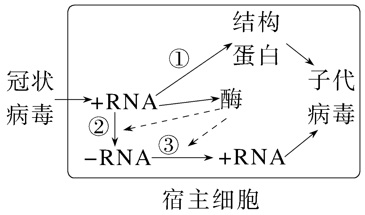 (1)在冠状病毒和艾滋病病毒体内,基因是指__________________________。在宿主细胞内+RNA能起到________(填“mRNA”或“tRNA”)的功能,过程①在________上进行。