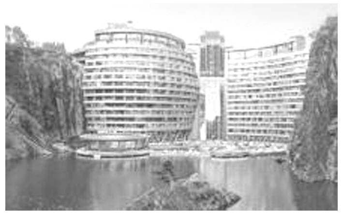 (2024·宁波市高一期中)如图所示,利用矿坑所建造的上海深坑酒店,设有地平面上3层约15米,地平面以下16层,其中2层在坑底湖水的水下,深度有10米。若建筑物包括水面下的总高度为75米,则一质量为60 kg的人立于地平面下20米的客房中,其重力势能相对于地平面是多少?若改以湖水水面为零势能面,其重力势能是多少?(重力加速度g=10 m/s2)( )