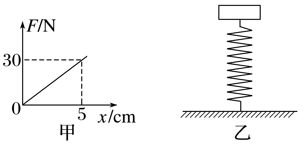 (多选)一轻质弹簧的弹力与弹簧形变量之间的关系如图甲所示。将该弹簧下端固定在水平地面上,一质量为1.8 kg的物体在外力作用下缓慢放在竖直弹簧的上端,待物体稳定后撤去外力,物体静止在弹簧上端,弹簧处在弹性限度内,如图乙所示,取重力加速度大小g=10 m/s2,则下列说法正确的是( )