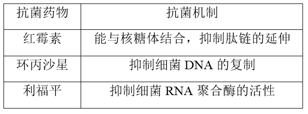(2024·浙里特色联盟高一期中)红霉素、环丙沙星、利福平等抗菌药物能够抑制细菌的生长,它们的抗菌机制如表所示。下列相关叙述不正确的是( )