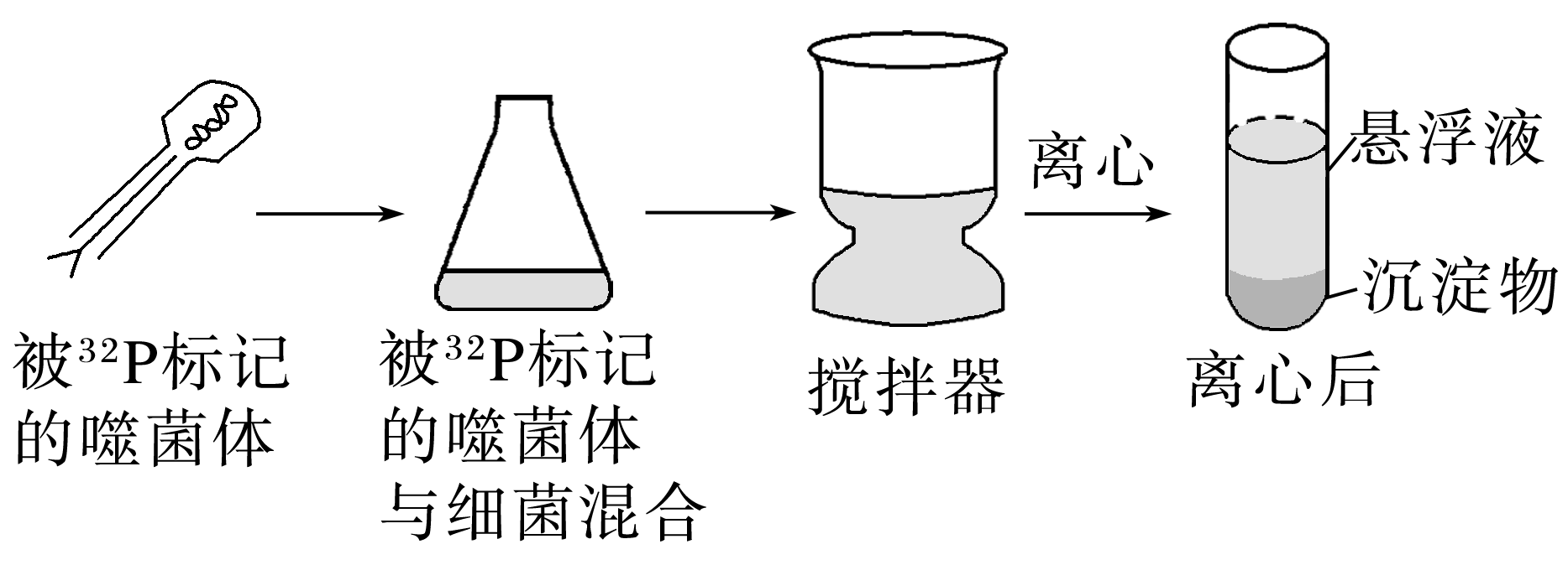 (3)按照(2)的推测,离心后悬浮液中______________________________________________(填“能大量”或“几乎不能”)检测到32P,沉淀物中______________(填“能大量”或“几乎不能”)检测到32P,出现上述结果的原因是___________________________________________。