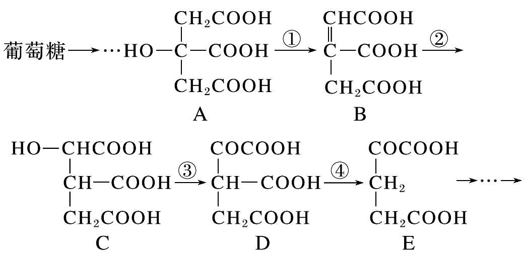 (2024·长沙高一检测)葡萄糖在人体内某些酶的催化下,经历了三羧酸循环过程进行分解代谢。如图为部分转化过程: