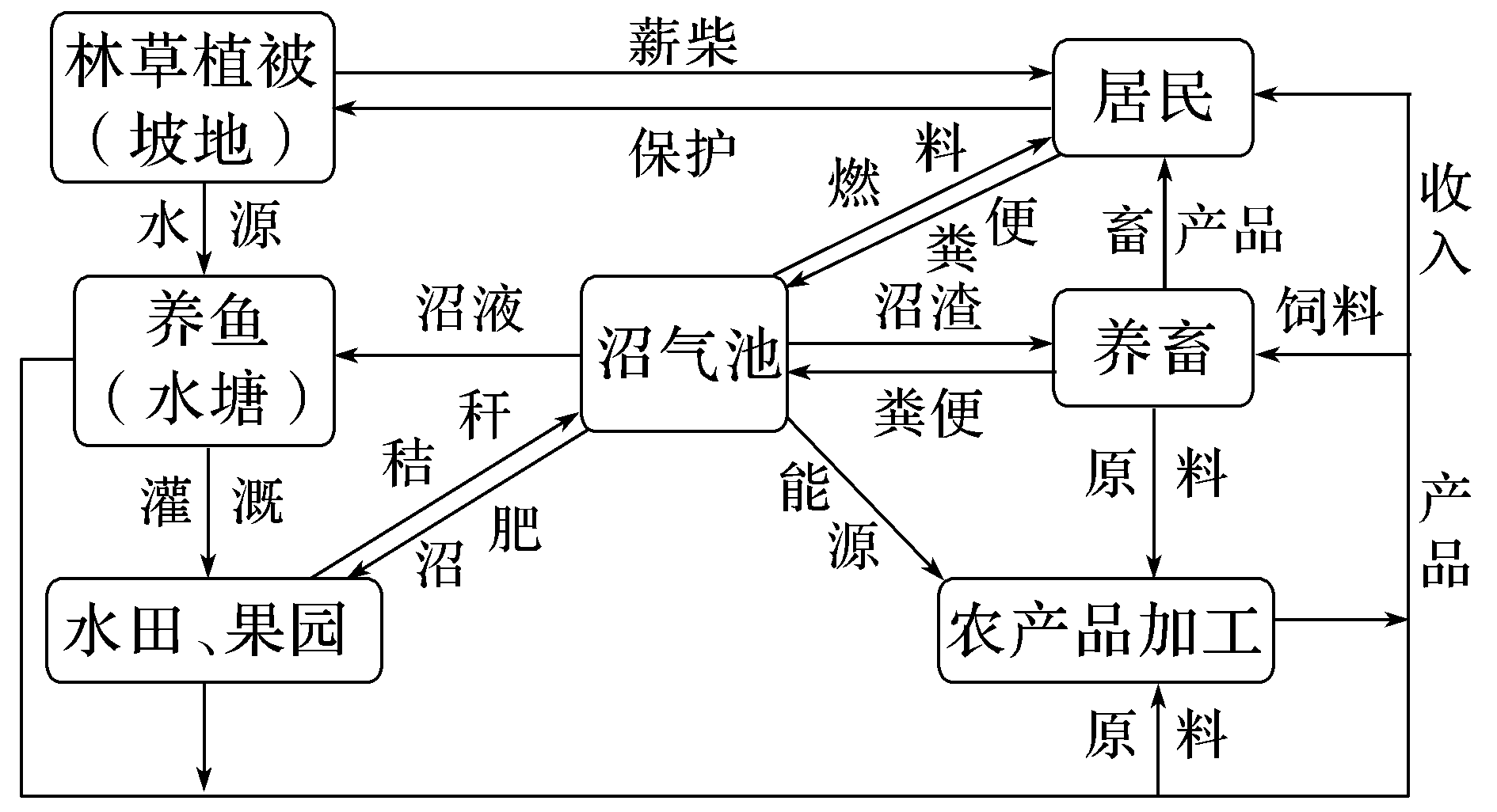 如图为“我国江南丘陵某农场生态农业模式图”。读图,完成15~16题。
