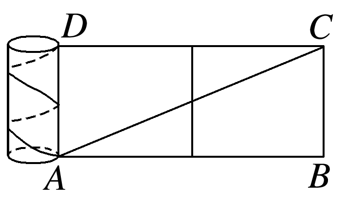 把圆柱侧面及缠绕其上的铁丝展开,在平面上得到矩形ABCD(如图所示),