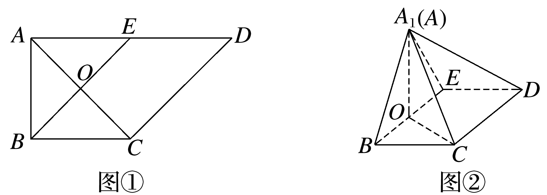 如图①,在直角梯形ABCD中,AD∥BC,∠BAD=,AB=BC=AD=a,E是AD的中点,O是AC与BE的交点.将△ABE沿BE折起到图②中△A1BE的位置,得到四棱锥A1-BCDE.