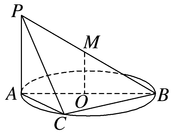 如图,直线PA垂直于圆O所在的平面,△ABC内接于圆O,且AB为圆O的直径,点M为线段PB的中点.下列结论中正确的是( )