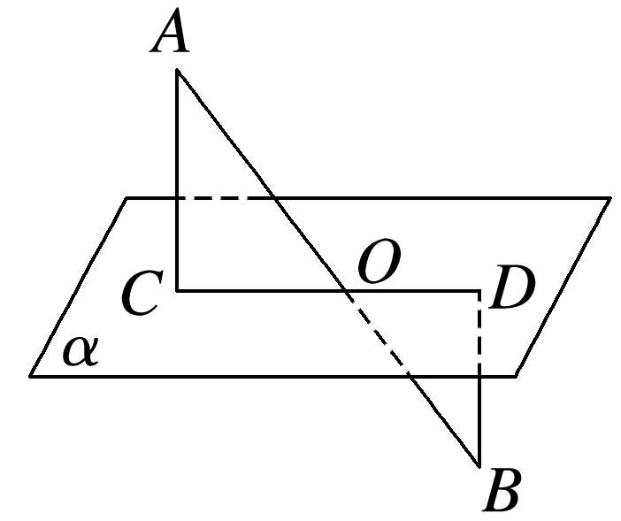 如图,作AC⊥α,BD⊥α,垂足分别为C,D,则AC∥BD,AC,BD确定的平面与平面α交于CD,