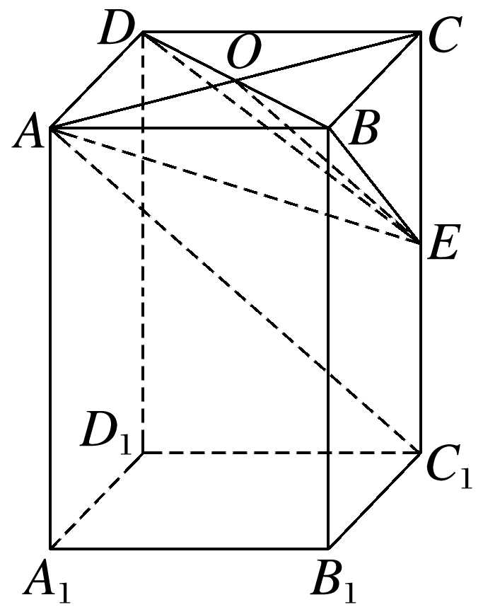 答案: 解 如图,连接AC交BD于点O,连接OE. 在△CC1A中,易证OE∥AC1.又OE⊂平面BED,AC1⊄平面BED,∴AC1∥平面BED,∴直线AC1到平面BED的距离为点A到平面BED的距离. 连接AE,V三棱锥E-ABD=S△ABD·EC=××2×2×. 在△BED中,BD=2,BE=,DE=, ∴S△BED=×2×=2. 设点A到平面BED的距离为h, 由V三棱锥A-BDE=V三棱锥E-ABD,得S△BED·h=×2×h=h=,解得h=1.