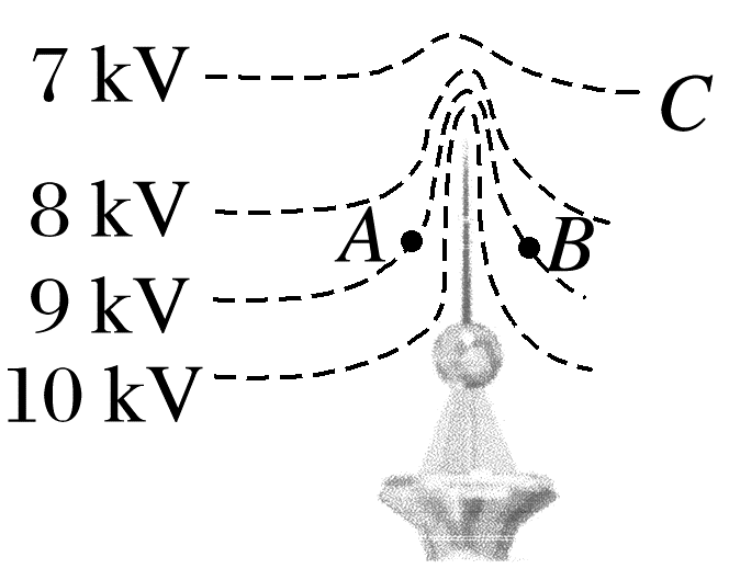 (2024 ·华中师范大学第一附中高二期中)避雷针可通过尖端放电中和空气中的电荷,进而使高大建筑有效避免雷击。如图为雷雨前夕某避雷针附近电场的等势面,下列说法正确的是( )
