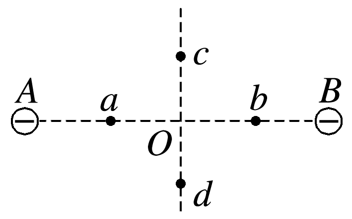 (2024·广州市高二月考)如图所示,A、B为两个等量同种点电荷,a、O、b在点电荷A、B的连线上,c、O、d在连线的中垂线上,Oa=Ob=Oc=Od,则( )