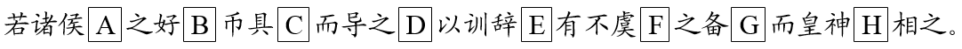 “诸侯之好币具”是主谓结构,应在C处断开;“有不虞之备”是动宾结构,应在前后E、G处断开。