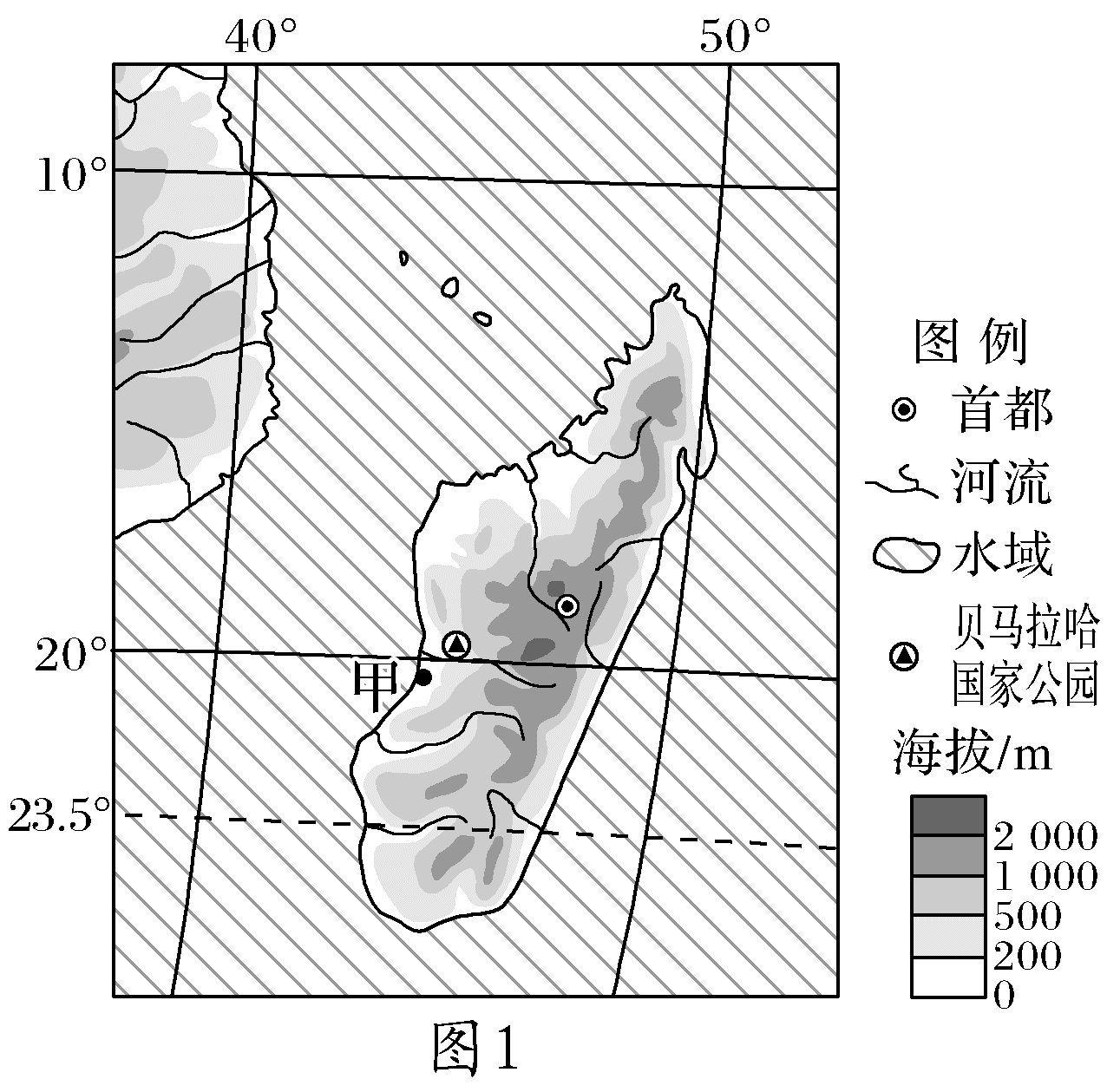 温州某同学暑假随父母前往马达加斯加旅游,图1为“马达加斯加略图”,图2、图3分别为该同学在甲地附近及贝马拉哈国家公园拍摄的两幅景观图。